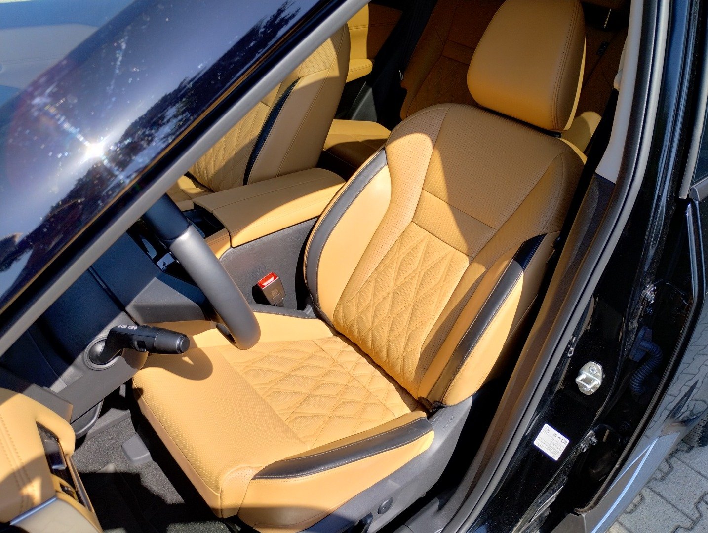 Pakiet Premium (Panoramiczne okno dachowe częsciowo elektrycznie otwierane) z elektrycznie regulowaną zasłoną, tapicerka skórzana z miękkiej w dotyku skóry Premium z przeszyciami)