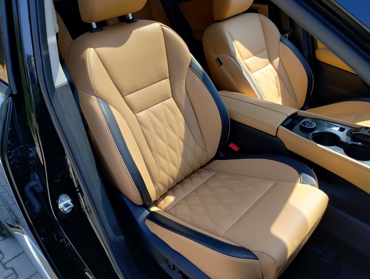 Boczki dzwi oraz zewnętrzna części tunelu centralnego wykończona skórą ekologiczną